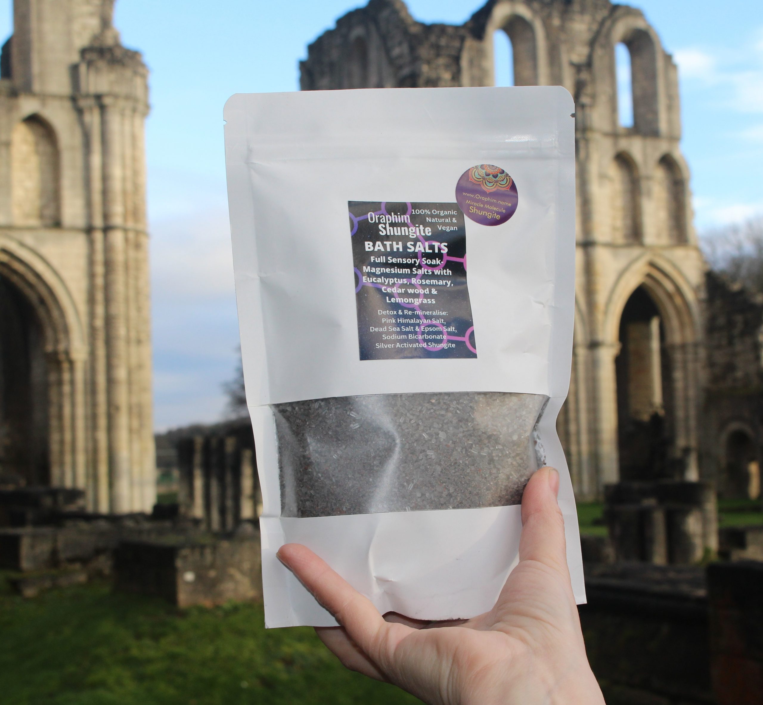 SHUNGITE BATH SALTS- Sensory Soak- Magnesium salts with Eucalyptus, Rosemary, Cedar wood & Lemongrass 100% Organic Vegan Natural Healing