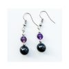 8mm Shungite bead with 6mm Crystal Bead, Silver Earring Wires
