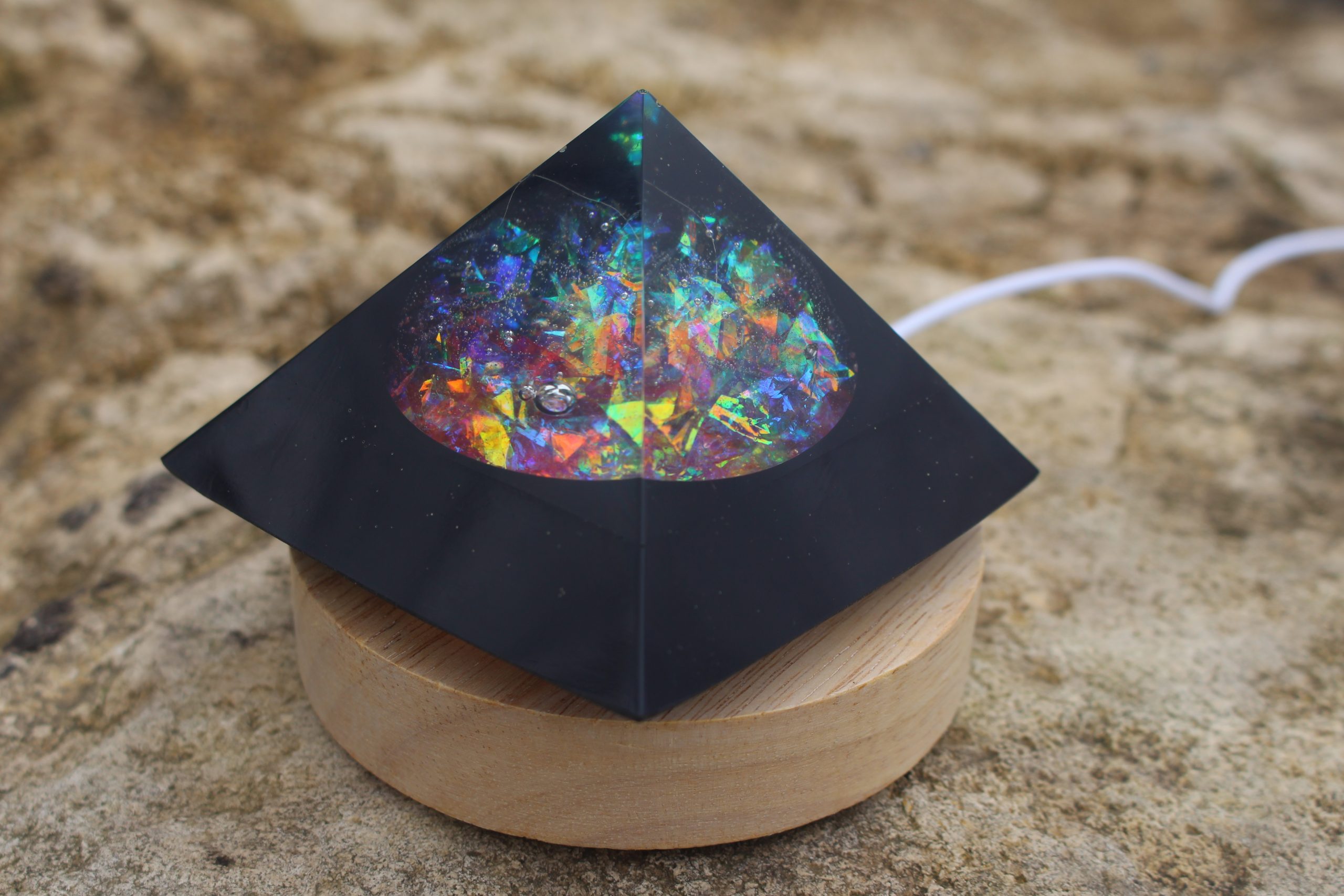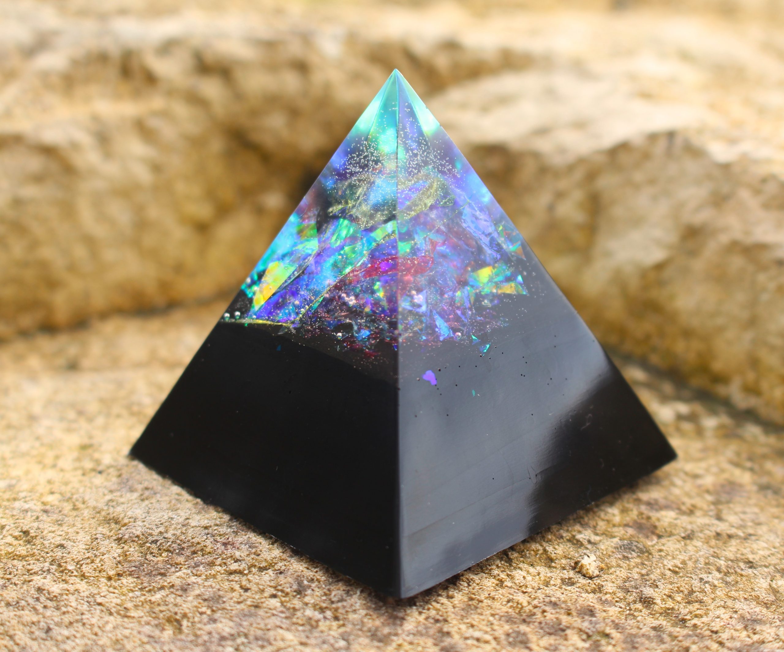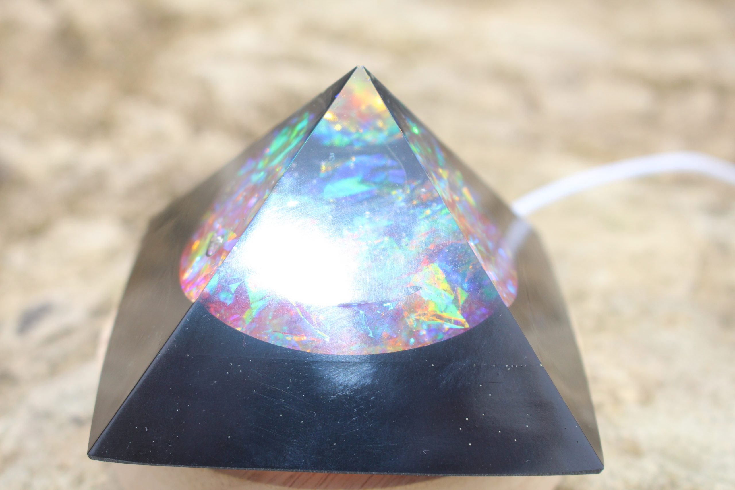 Powerfully calming Silver Activated Shungite Pyramids are powerful meditating aids. USB Light option included!
